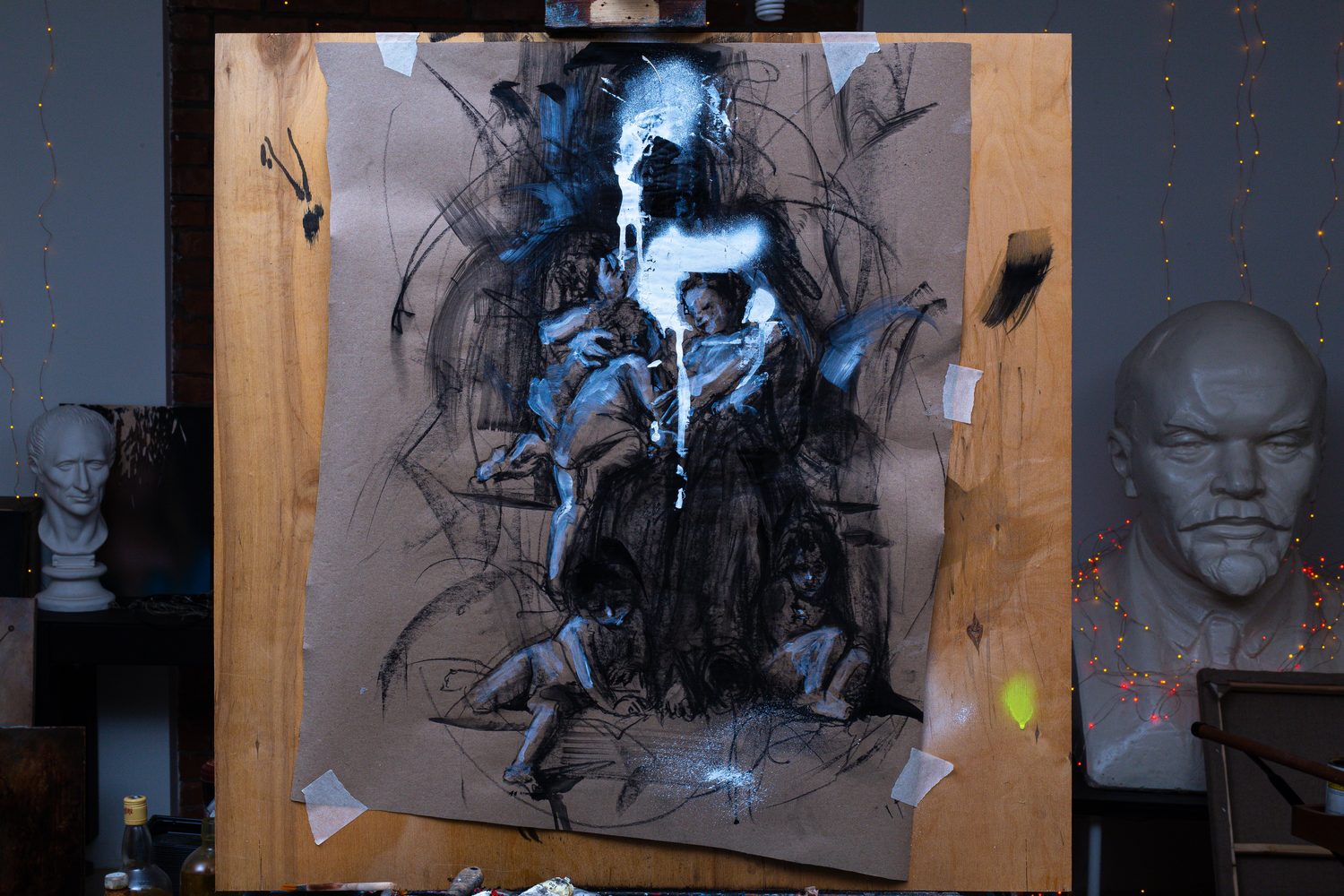 Акрил и уголь на бумаге